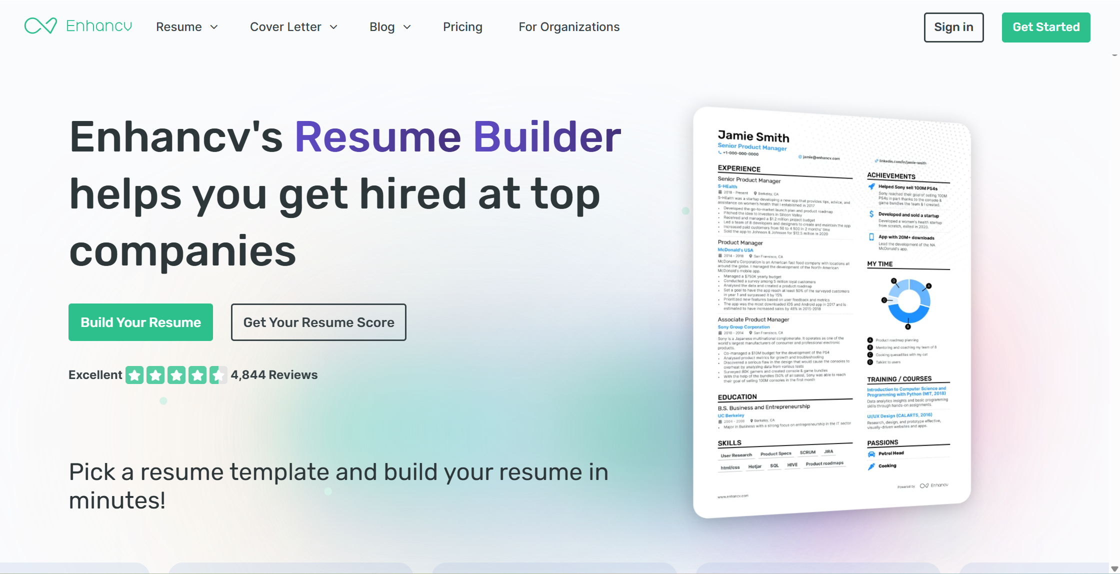 EnhanCV 是一家备受好评的免费简历设计网站,适合希望通过简历展现个性的用户,优势在于能快速帮助用户打造个性化简历。