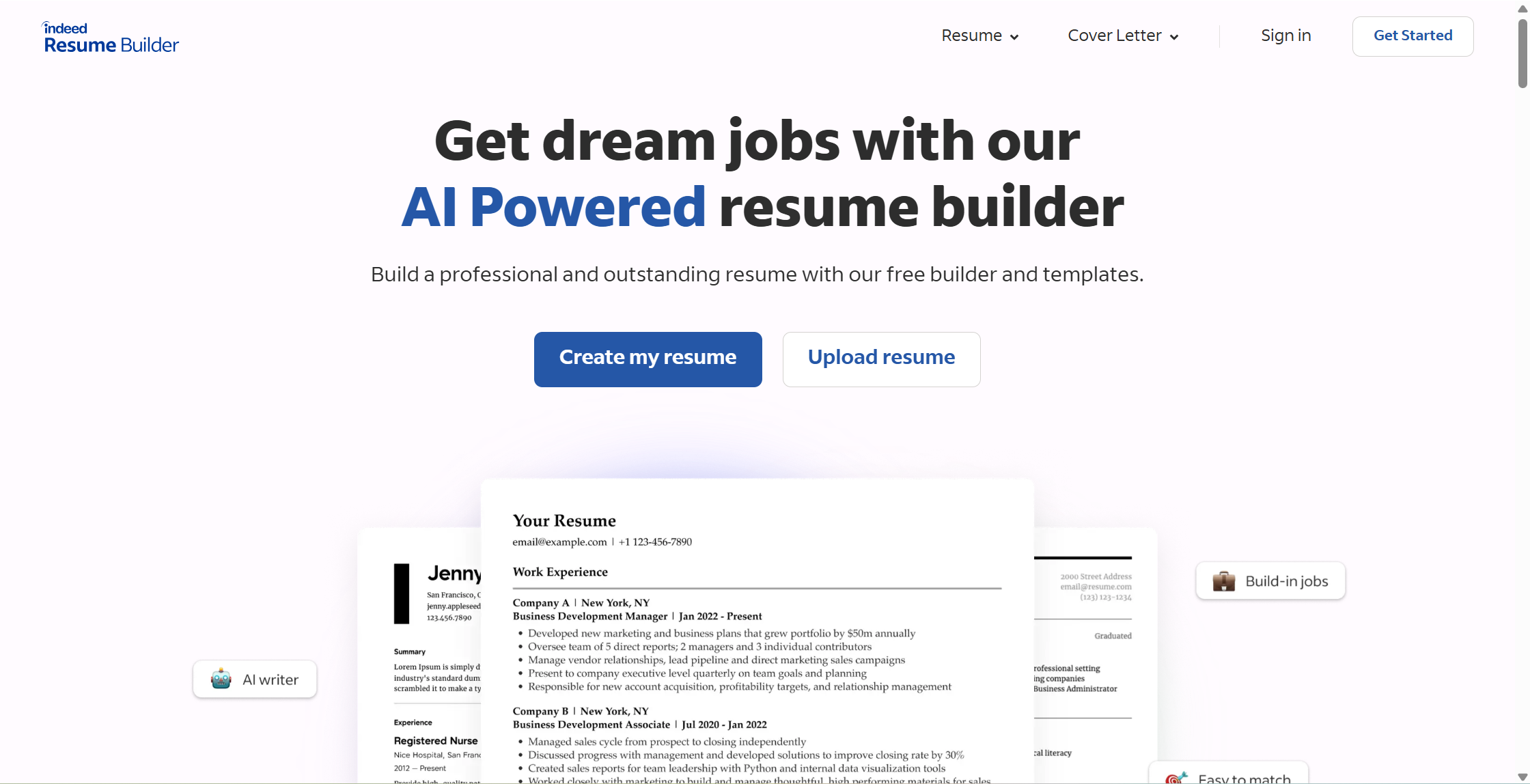 indeed Resume Builder 是一款定位于大众用户的免费简历设计网站。
