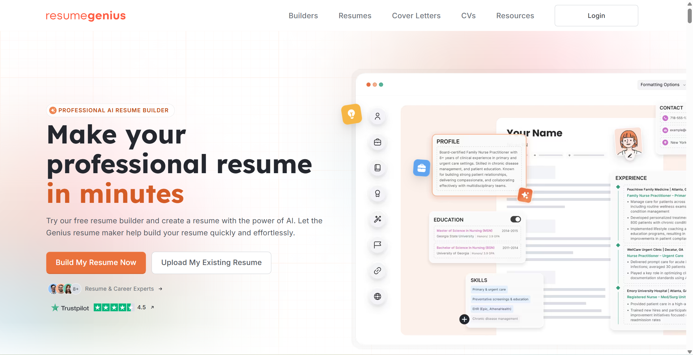 Resume Genius 以高效著称,是一款极具效率的免费简历设计网站。
