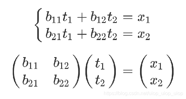 最后那个矩阵等式,与前面的矩阵等式一对照,就会得到下面的关系。