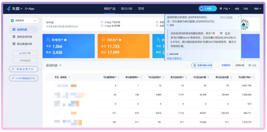 7月产品升级 | U-App AI数据简报上线,一键解读运营数据,效率翻倍!