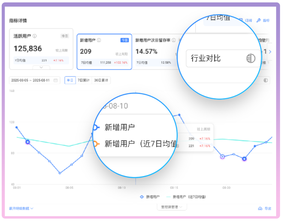 行业平均参考线:提供横向对标基准,客观评估业务表现。