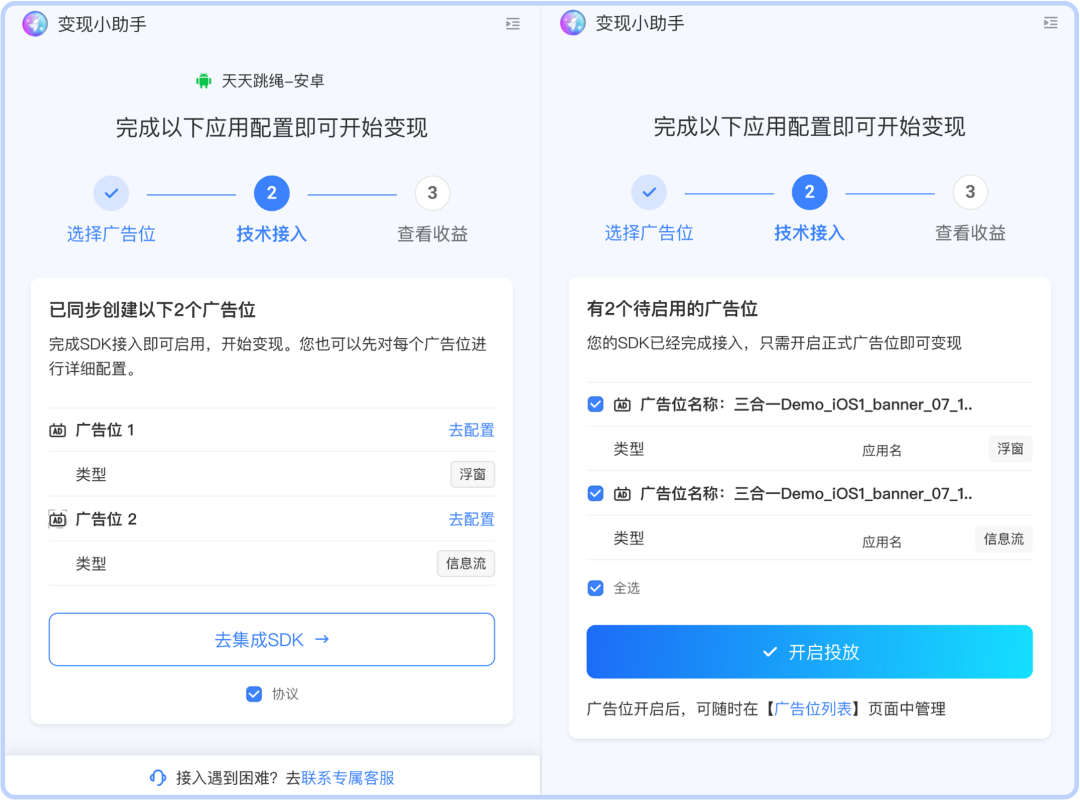 第二步:快速集成与高效投放。媒体主获取专属AppKey后,按照指引完成SDK集成,即可开启正式投放。U-AppWin会提供分步式接入流程图解以及清晰的技术文档支持,从接入SDK,到正式投放,最快当天即可见分晓,实现“接入即见效”。