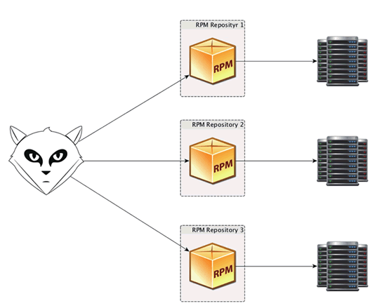 图 3 “根据不同交付目标环境,设置不同RPM仓库作为交付地点”示意图