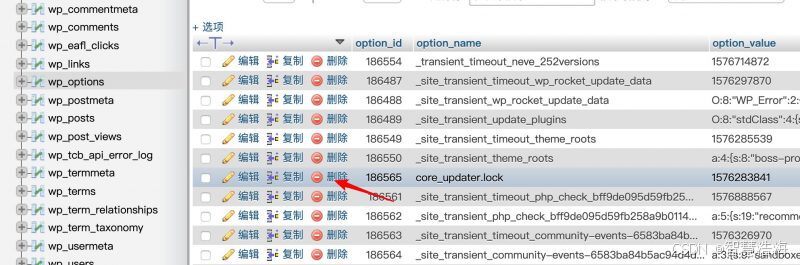 登陆到phpmyadmin后台后,选中 wp_options 表