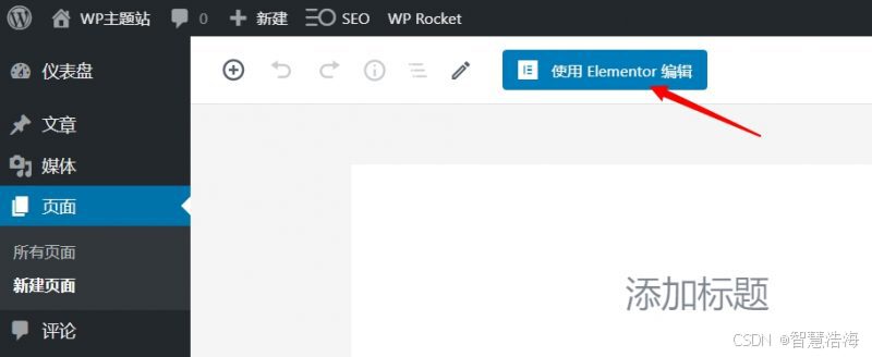 首先,我们新建一个页面,并点击 使用Elementor编辑 按钮,将其转换为Elementor页面