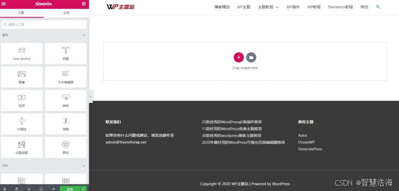 切换到Elementor界面后,你就会看到如下的Elementor编辑界面