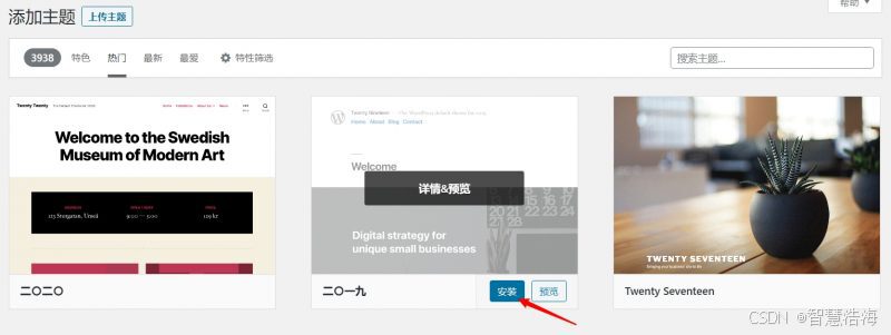 找到需要安装的主题后,只要点击 安装 按钮即可安装主题到WordPress站点