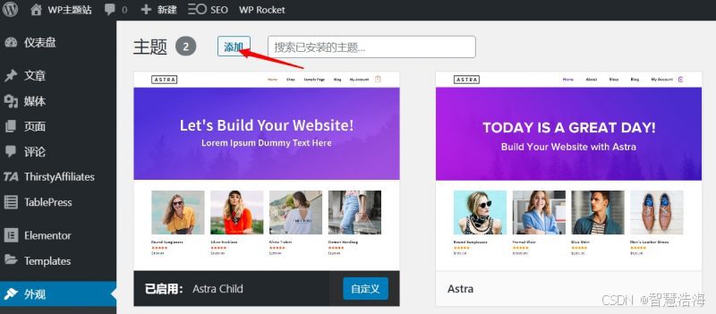 依次打开 WordPress后台 – 外观 – 主题 – 添加