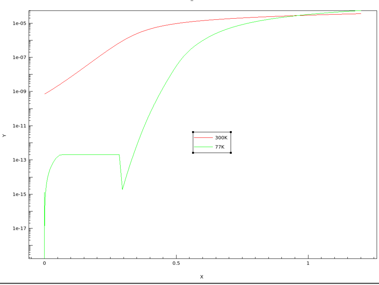 目前Vd=0.1V下的Vg-Id结果,环境温度在77K和300K下的结果。