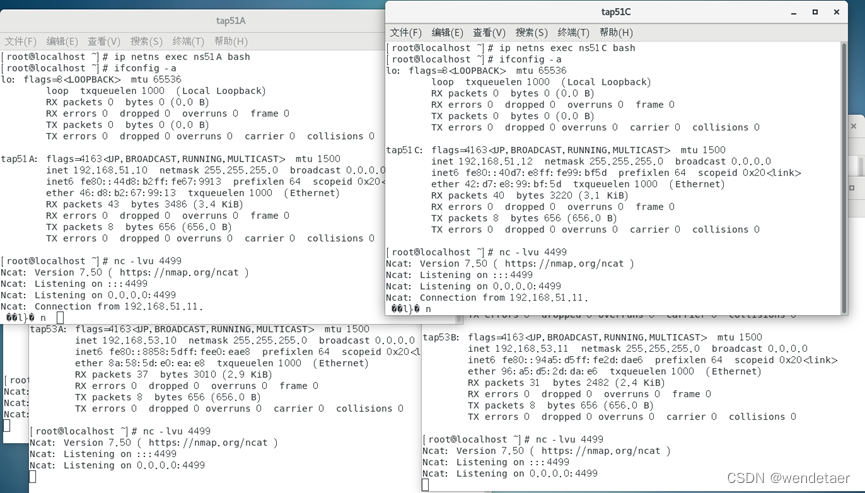 tap51A与tap51C接收到了消息,其他几台不能接收到消息。