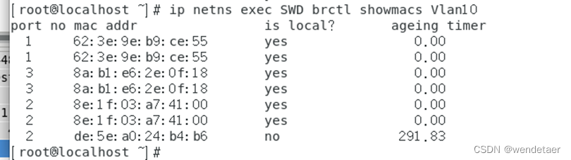 如果交换表中有 is local 的值是 no 的表项,等待一小段时间再次查看。当所有非本地表项超时(默认超时时间300s)清空后,继续后面的步骤。