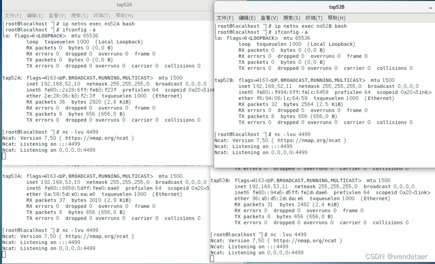 3.重复本步骤中1、2,在主机ns51C、ns52A、ns52B、ns53A和ns53B的4499端口打开UDP服务程序。