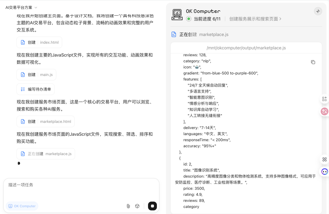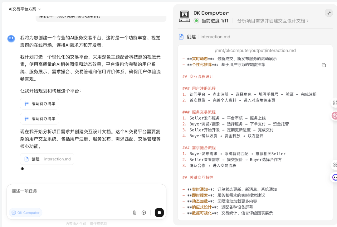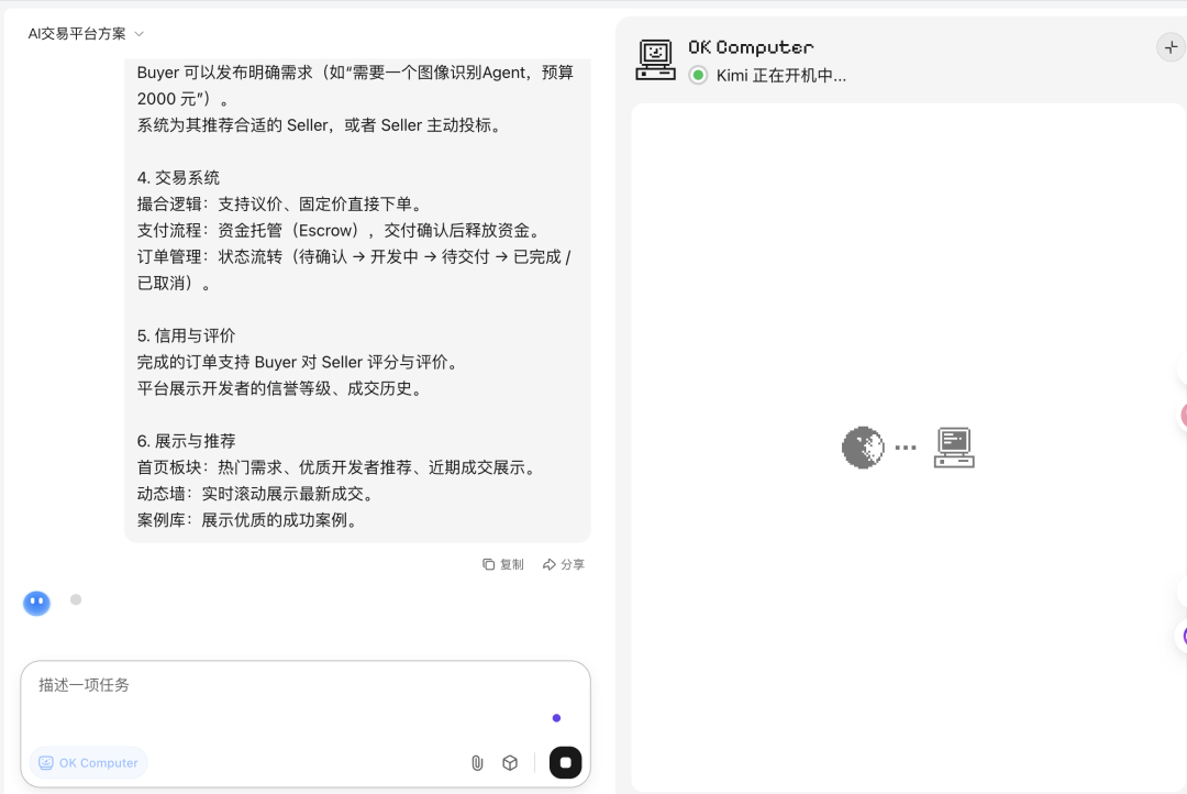 搭建一个面向AI需求方(买家) 和AI开发者(卖家) 的在线交易平台,提供安全高效的撮合机制,支持 AI 相关服务、产品和Agent的发布、购买、洽谈与展示。