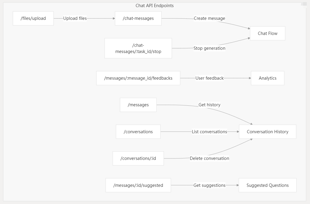 Dify 中的聊天 API 提供了用于创建和管理与人工智能模型的对话交互的端点。这些端点支持流式和阻塞式响应模式、用于多模态交互的文件上传、对话管理以及用户反馈机制。