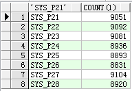 可以查查每一个分区中有多少数据,range分区很好查,按分区列条件查就好了,这个hash不行,我查了一下,语句如下: