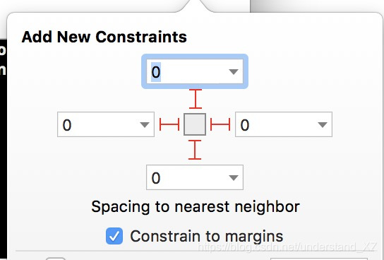 二、在scrollView上添加一个UIView,作为scrollView的contentView,设置它的设置它的上、下、左、右约束相对于父视图为0,如下图: