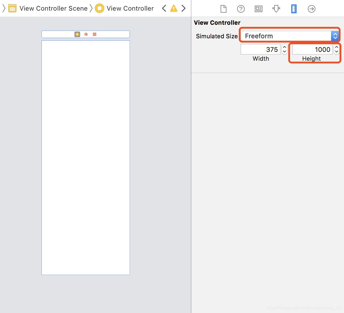 storyBoard中选中当前控制器,点击右侧的尺状的按钮,设置成 freedom 类型的,然后就可以自己设置高度了,则在storyBoard中显示如下图: