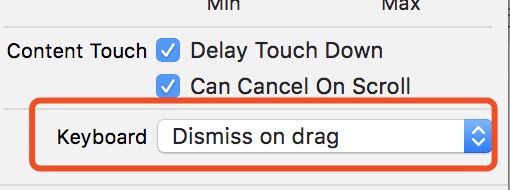 3、设置scrollView在用户拖拽的时候实现键盘回收,自己代码设置的滚动键盘不回收: