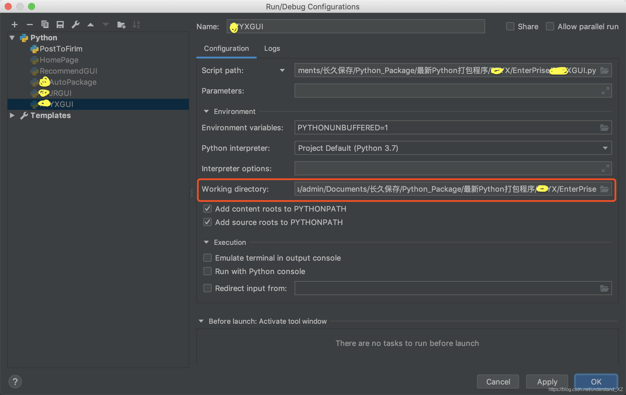 error running ‘***’: Cannot start process, the working directory ‘***’ does not exist
