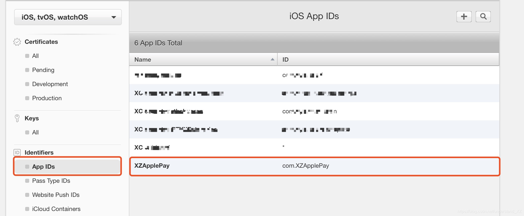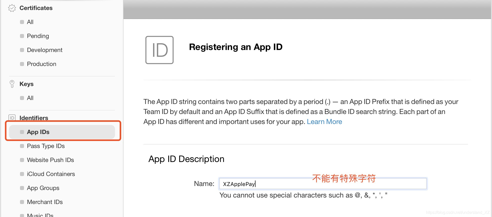 点击 App IDs,点击 + 号,添加一个AppID