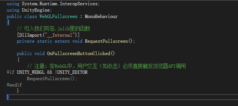 你的C#代码在WebGL里会被编译成WebAssembly,但浏览器世界的“土著”是JavaScript。要和浏览器本身的功能(比如全屏、复制到剪贴板)打交道,你需要一位“外交官”—— JSLib。