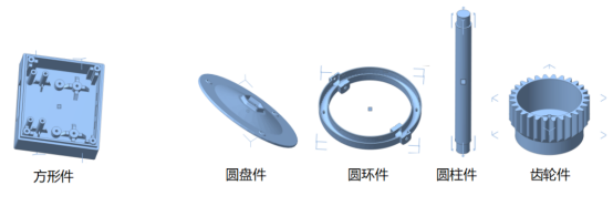 AI 结合几何算法,ONE可自动识别工业手板模型,将模型分为标准件(方形件)、圆类(圆盘类、圆环类、圆柱类和齿轮类)两大类,针对不同大类模型采取不同策略,有效提高前处理效率。