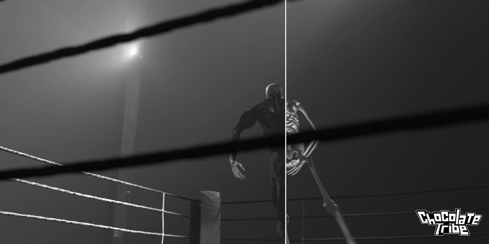 真人拍摄部分会在此阶段进行。拍摄的镜头会被用于三个场景中一个场景的特写。另外两个场景,包括大片的屏幕墙和拳击场,则是全 CGI 的。所有 3D 场景同样极度专注于细节,好让画面更加丰满。