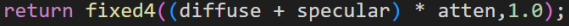 最后漫反射和高光分别乘以衰减值即可获得附加光源最终的灯光效果。