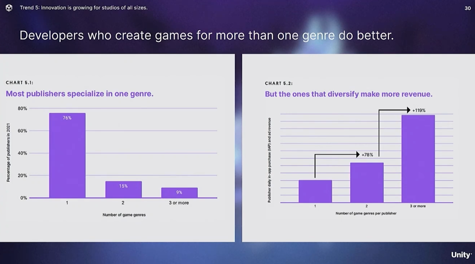 - 实际上涉猎游戏类型更丰富的工作室收入更高
