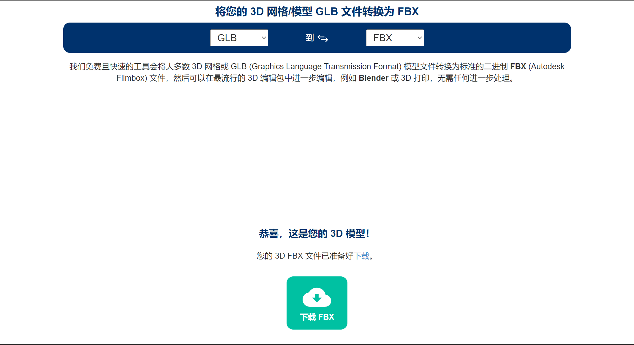 ③点击右边的Upload Character(其实也可以在这个网站上找一个模型差不多的直接下载动画,也能用),这里介绍更为通用的方法——Upload Character,这里需要特别注意,Mixamo只支持FBX格式的,而我们的虚拟形象在Unity中是3D Object格式,所以我们需要一个网站做一个转化,这里给大家推荐一个在线转化的网站-
