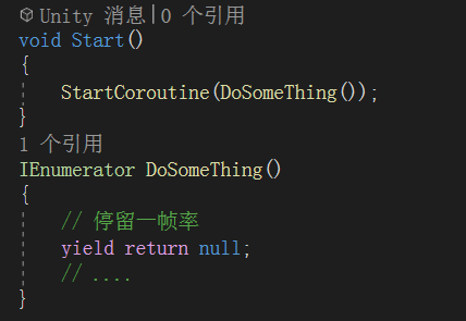 至于yield return null,为什么会有暂停一帧的效果,因为相当于什么也没做,但是检查需要在下一帧进行