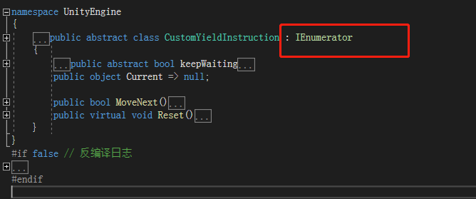 StartCoroutine接受到的是一个IEnumerator ,下方我们的定义的协程方式也确实返回值为IEnumerator ,所以我们先不管Unity怎么实现协程机制的,我们可以先看这个“IEnumerator ”,这个并不是Unity提供的类型,而是System.Collections.IEnumerator 。
