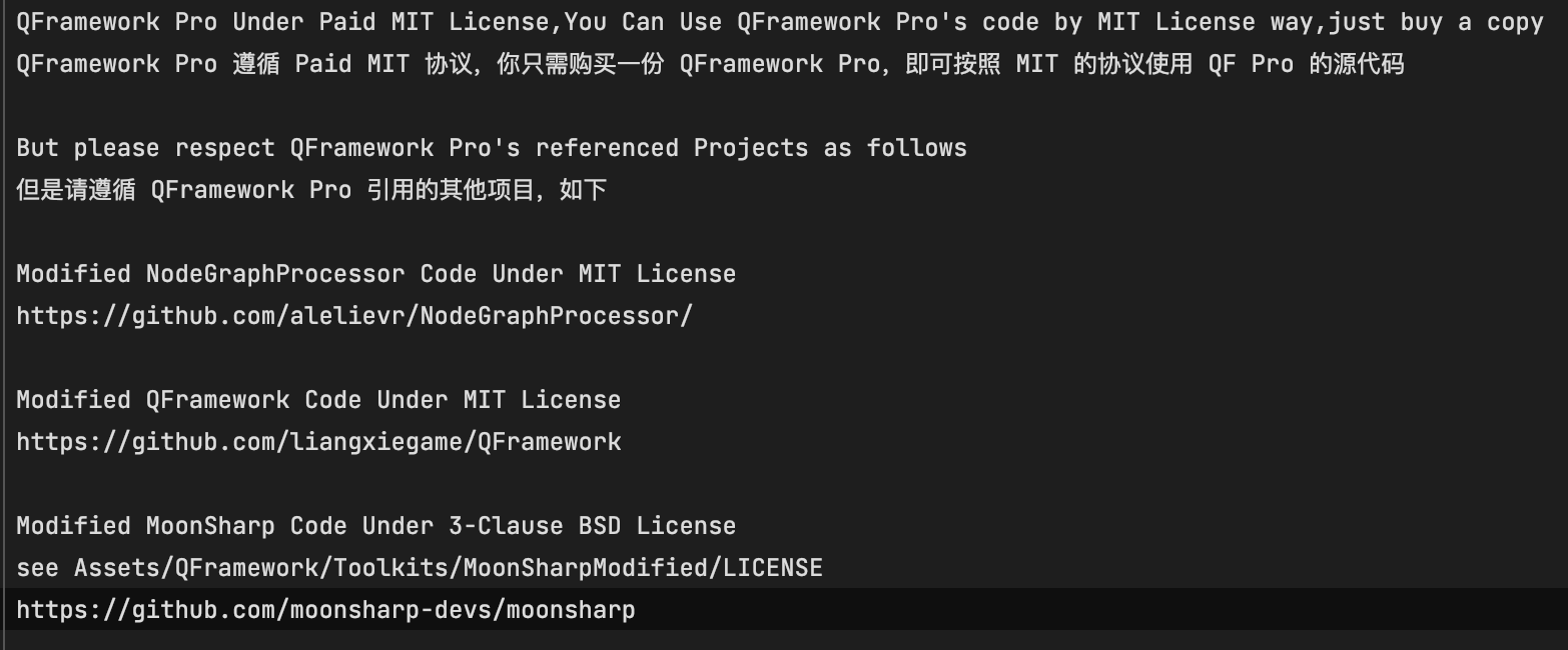 但是由于 QF Pro 引用了一些其他协议的项目,所以请尊重他们的开源协议,最低限度只需包含协议声明即可。