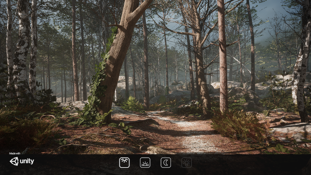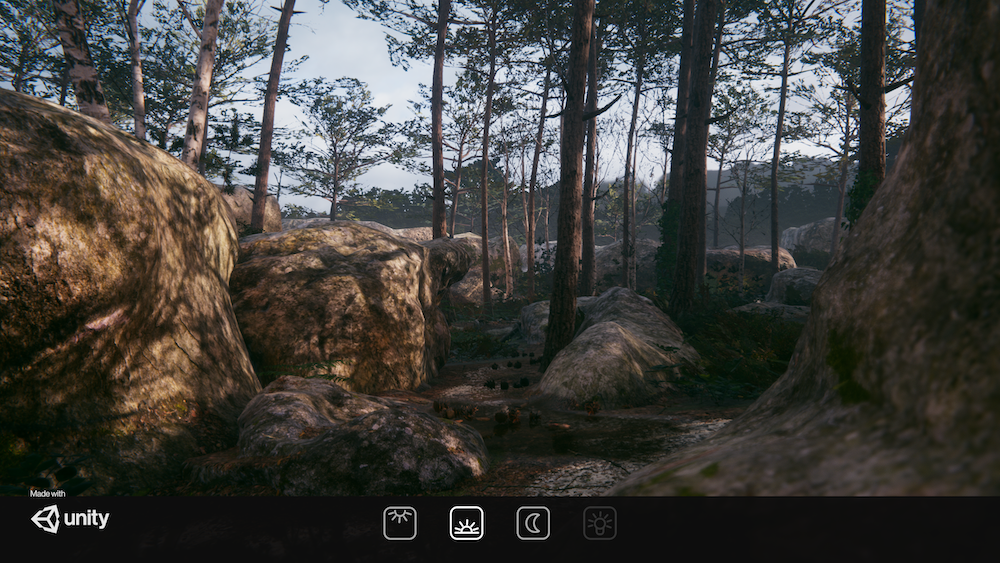该项目使用枫丹白露森林的一部分,并使用一组有限的网格和纹理,这些网格和纹理在 LayeredLit 着色器的帮助下以不同的变化重复使用。