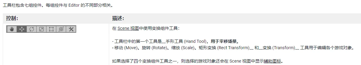 菜单栏下方的工具栏的左侧是七个按钮,快捷键分别对应:Q、W、E、R、T、Y,各自说明如下(来自官方文档):