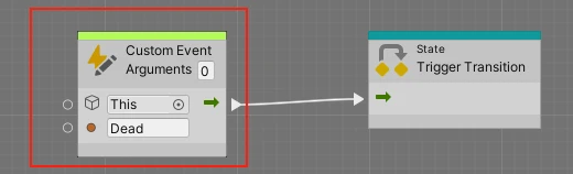 双击中间黄色的图标即可编辑状态之间的过渡条件,在其中使用Custom Event事件结点来触发过渡: