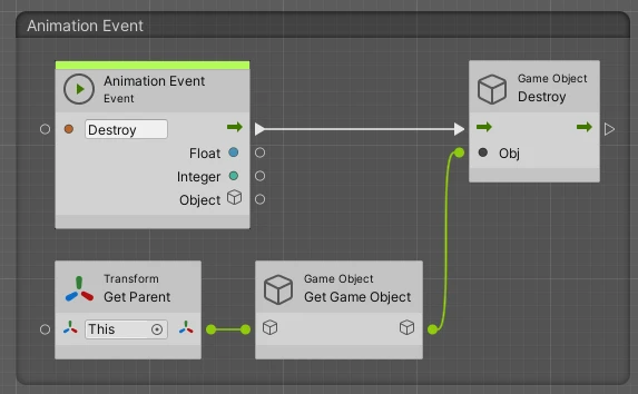 并将Name参数设置为之前填写的Destroy,最后该事件来编写销毁Opossum对象的父对象Enemy Opossum对象即可。逻辑如下图所示。