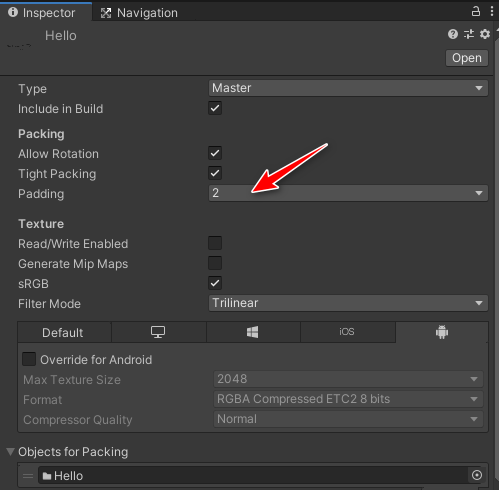 那么我们是否可以针对这种情况将其移植到UGUI里面呢? 答案是可以的. 我们只需要将图集的Padding将2改为4或者8即可.