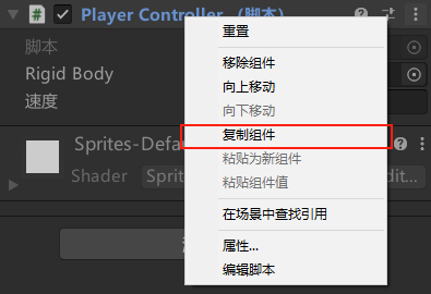 建议新建一个Scripts文件夹来专门存放脚本。 一般情况下,控制玩家所代表的的Sprite的脚本可以称为Player Controller(玩家控制器)。