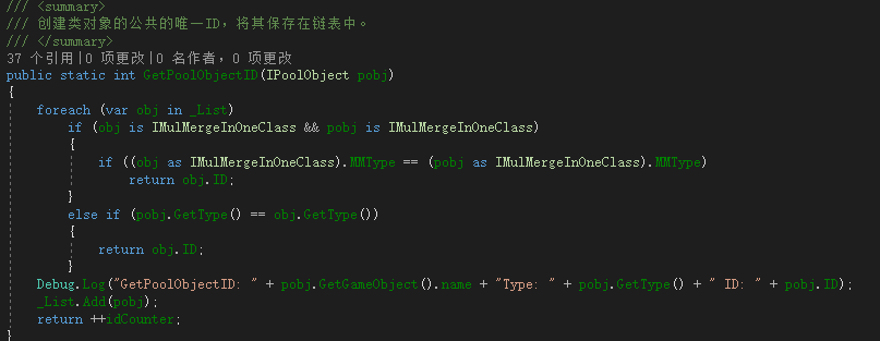 这里是获得ID的算法,先对类GetType(),比较是否已有该类的ID值生成,否则就全局计数器+1,返回新的ID值。