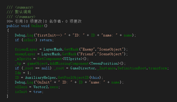 实例化时自动调用OnInit(),这里主要是获取类的回收池ID。
