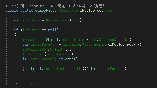 CreateNew,bullet对象在创建时调用,如果回收池里没有缓存的,就实例化。