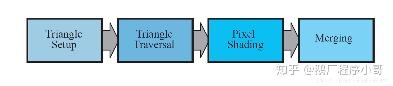 所有逐像素的着色计算都在像素着色阶段进行,使用插值得来的着色数据作为输入,输出结果为一种或多种将被传送到下一阶段的颜色信息。纹理贴图操作就是在这阶段进行的。