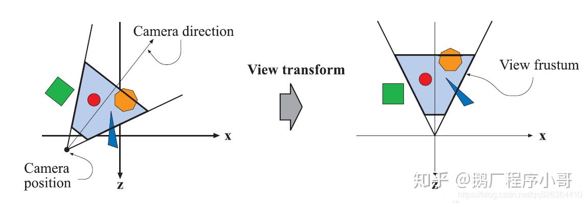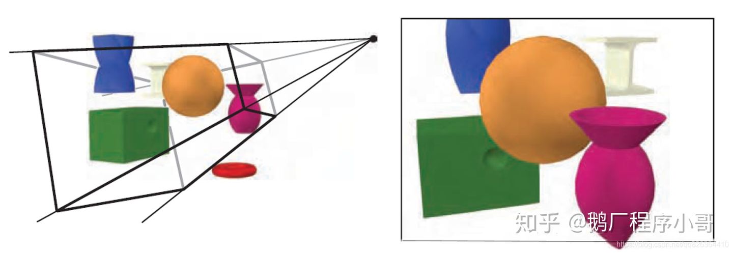 相机放在棱椎的顶端(四条线段的交汇点),只有可视体内部的图元会被渲染。