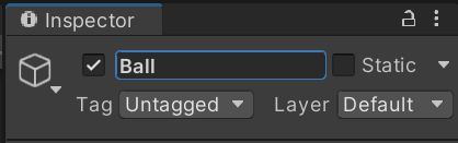 Hierarchy中选中Circle, 并到Inspetor中,修改它的名称为"Ball",回车: