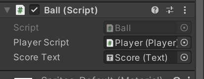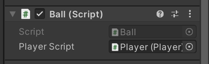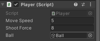 将Player角色赋值给Ball(Script)->PlayerScript变量, 为了实现对Player.isShoot变量的控制。