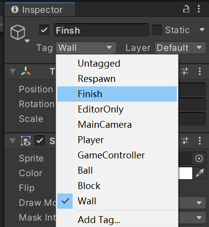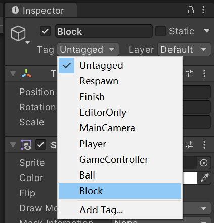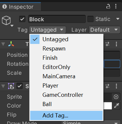 增加一个Tag, Inspector->Untagged->Add Tag...