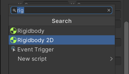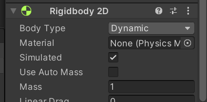 为Ball增加Rigidbody 2D组件, 让它有力学功能: