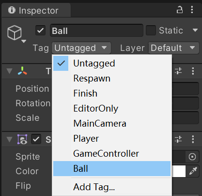 注意,Body Type要保持为“Dynamic”, 因为Ball角色是会根据受力动态移动的: